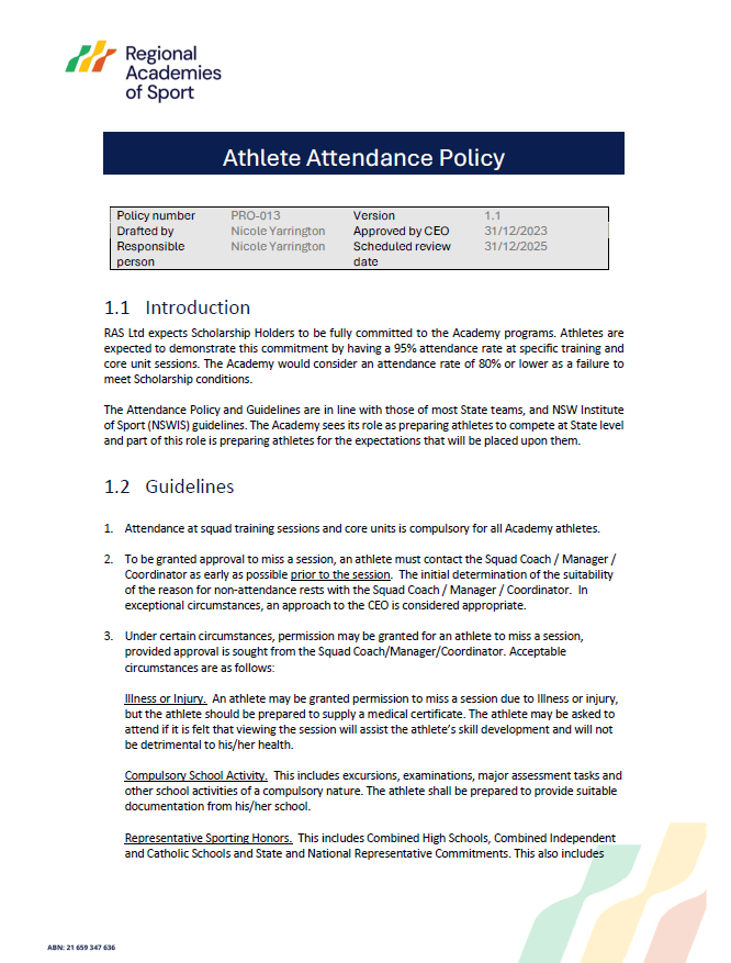 Athlete Attendance Policy