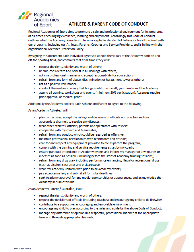 Athlete & Parent Code of Conduct