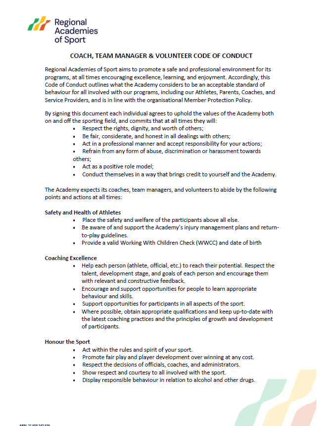Coach/Manager & Volunteer Code of Conduct